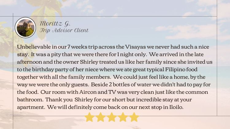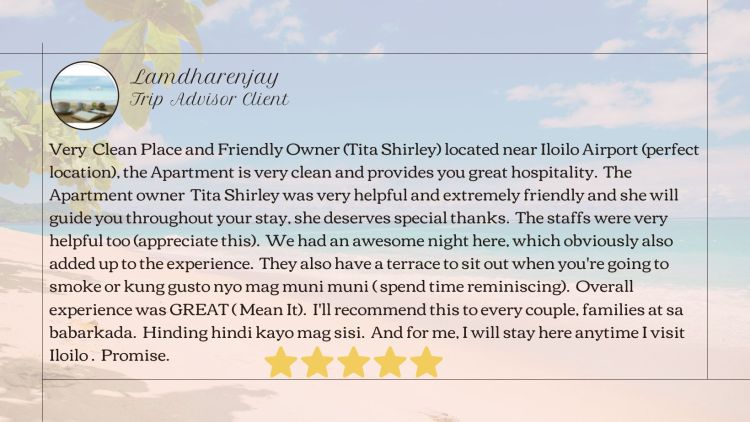 Sinoben Apartment is only 8 minutes drive from Iloilo International Airport and 30 minutes drive to SM City Mandurriao and Festive Walk. You can enjoy everything the city has to offer just outside your doorstep.